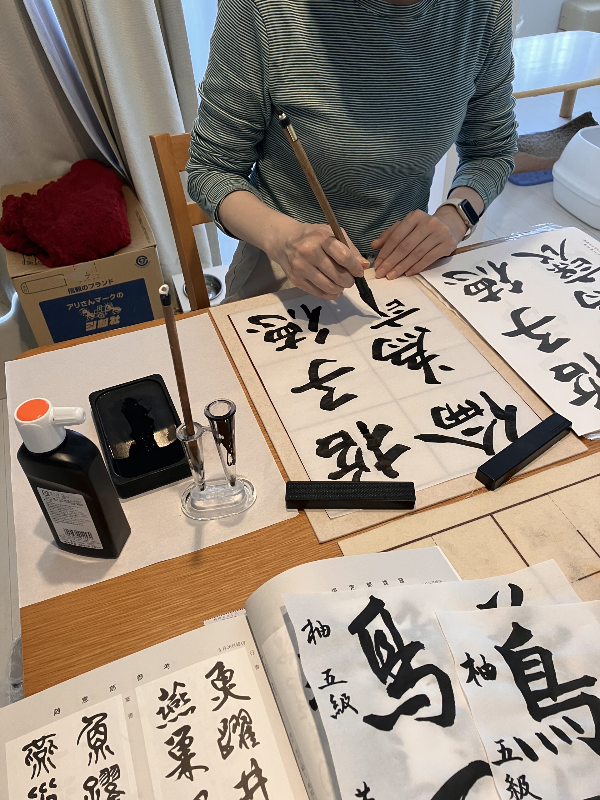 『臨書』と呼ばれる、中国の有名な書家が紙や石に書き残した「古典」を真似て書くことも課題に採り入れています。